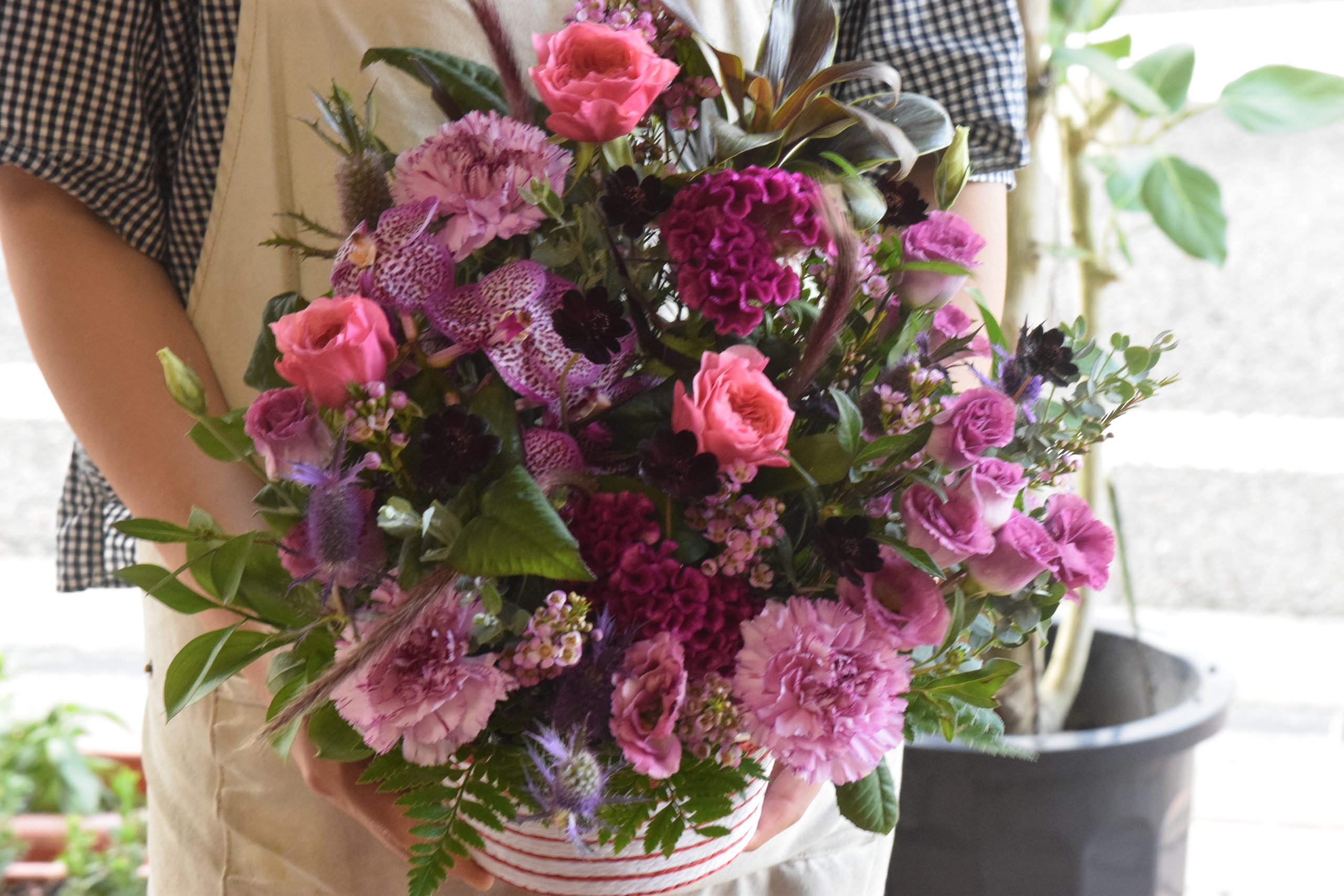 紫、ピンクメインのアレンジメント