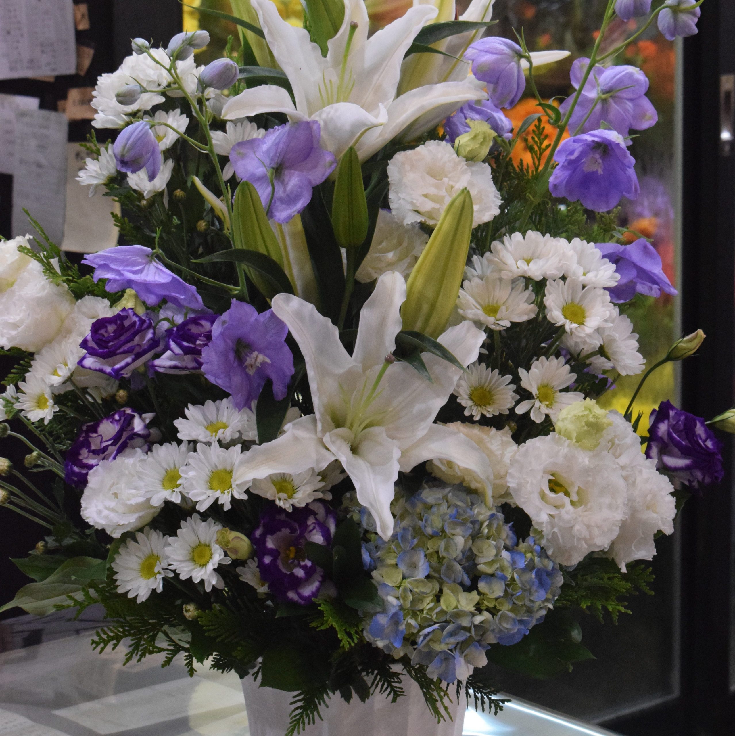 県内有数のお花の品揃えです。お悔み、ご葬儀などお急ぎの場合はお電話でも対応致します。(0969-22-3808)FAX兼用。天草島内斎場、ご自宅へ時間までにお届けいたします。